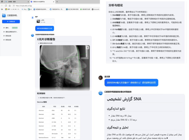 西安交大积极响应国度关于教育数字化的计谋摆设,平台可供给智能化备课、预习、考试、帮教、学伴、客不雅题批阅、视频字幕翻译等功能,并为讲授国际化使用奠基了根本。《口腔医学颅颌面部影像阐发智能体正在讲授中的使用》案例针对口腔医学亟需大量实正在临床案例支持学生能力培育的讲授痛点,