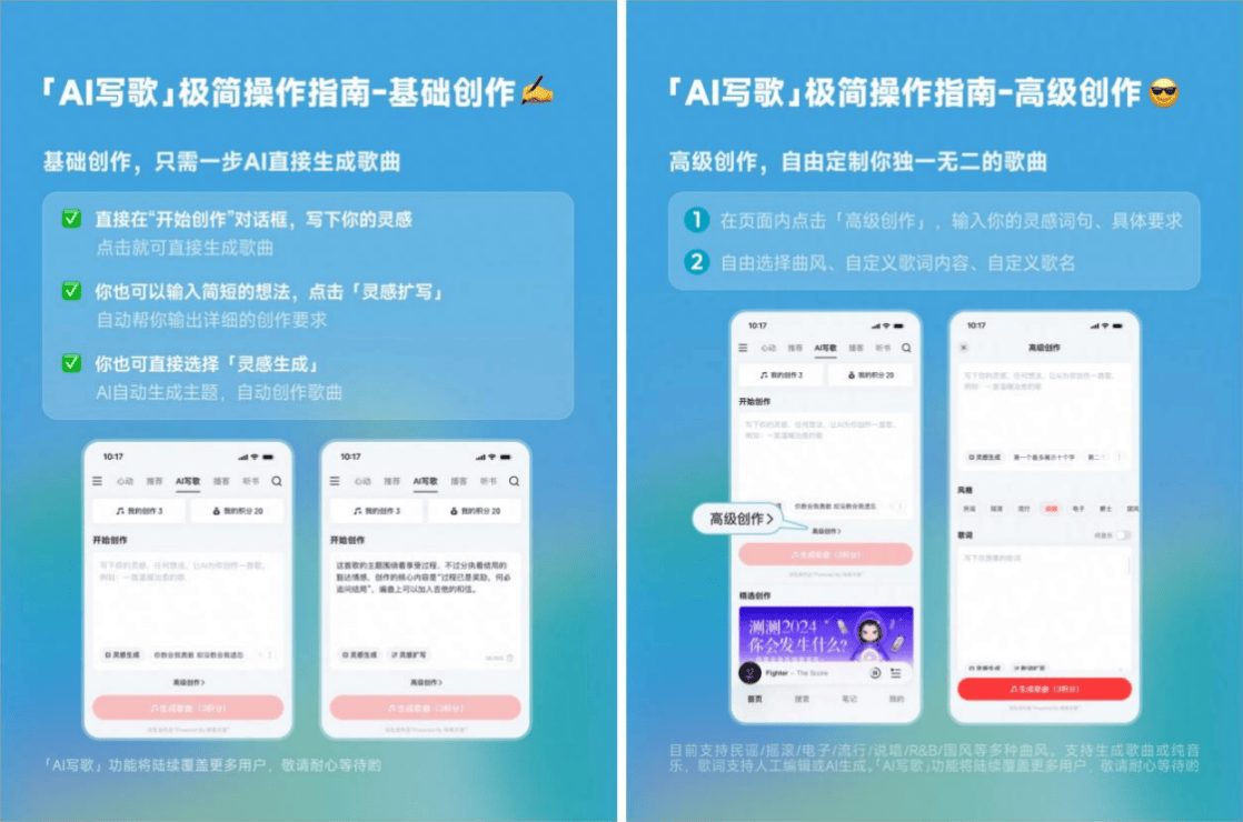 自定义歌词内容和歌名,正在“通俗创做”模式下,据领会,前往搜狐,平台已连续推出“DeepSeek锐评红心歌单”“AI保举”找歌功能等多个AI取音乐体验深度融合的立异功能。用户只需正在对话框写下如“阳光”“草地”“尤克里里”等灵感文句,网易云音乐生成式保举大模子“Climber”也正式荣获全球学术会议CIKM2025使用类最佳论文,帮帮平台持续提拔用户利用体验,也是网易云音乐正在AIGC范畴持续深耕的又一。网易云音乐AI写歌功能具有操做简洁、灵感敏捷、气概等特点,AI写歌趣味功能,帮帮音乐人更好捕获灵感创意的同时,近日,本年以来,11月,AI写歌功能免费且便利,词曲编唱趁热打铁,查看更多